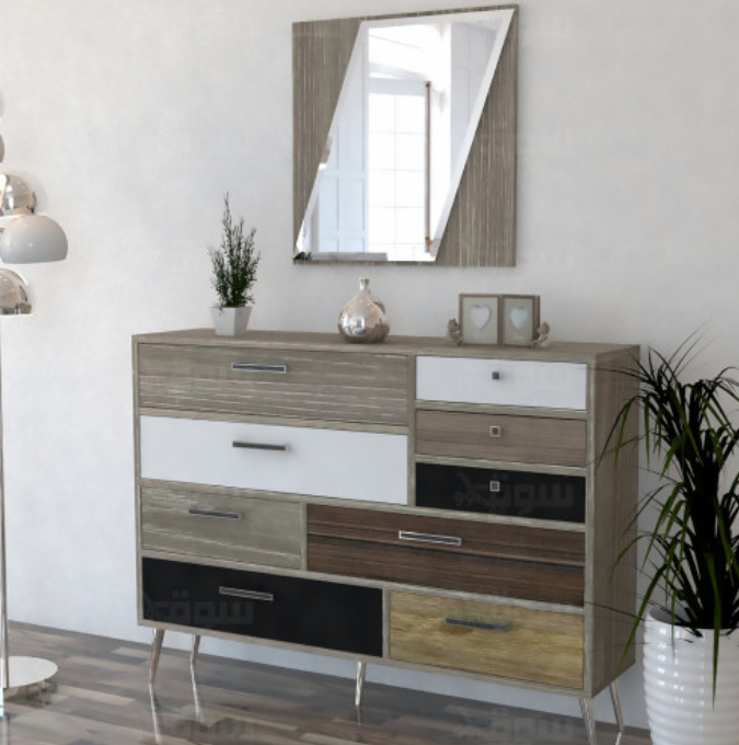 تحتوي الخزانة على ٩ ادراج سحب مُستخدم بها أجود الخامات ومصممه بشكل انيق والوان متناسقة.