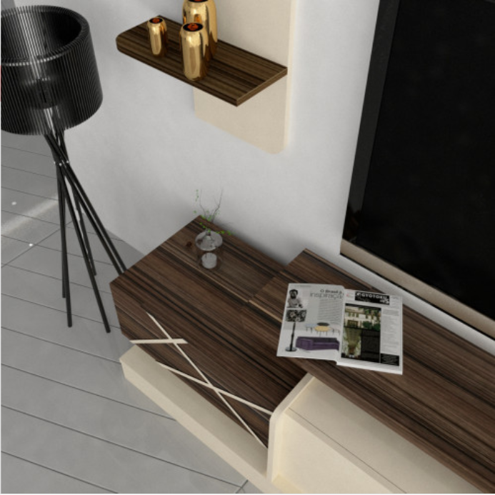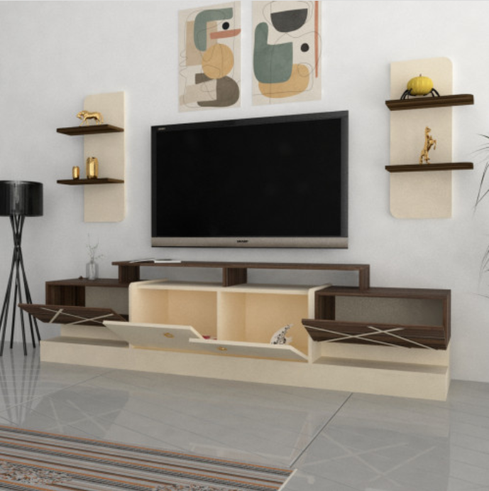 خشب MDF ملمس ميلامين وتحتوي على مفصلات هيدروليك للأبواب مما يجعلها سلسة بالفتح والاغلاق ، فقط اغلق الدرفة الى المنتصف واتركها تنزلق بمفردها بهدوء حتى تغلق تماما