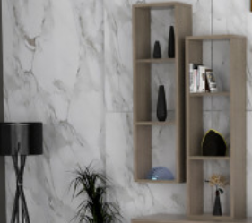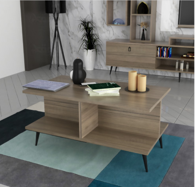 - طقم طاولات مكون من طاولة تلفزيون شاملة ثلاثة أرفف جدارية لمزيد من التنظيم وطاولة وسط باللون الأبيض يضيف لمنطقة الجلوس جمالية وفخامة وترتيب لتستمتعوا بمشاهدة برامجكم التلفزيونية مع كوب القهوة المفضل لديكم